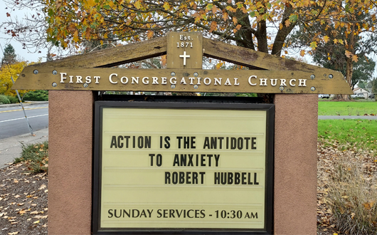 Rev. Reichert often says, “FCC is the place you would want to go to church if you went to church.” We are a gathering of spirited people who care about earth justice, speaking out about injustice, tending to the vulnerable, and learning to find common ground, these are the relevant earmarks of our congregation. We invite you to join us on Sunday mornings either contemplative at 9:00am or regular in person at 10:30am. Here is the Zoom link for our 8:30 a.m. service.